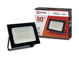 Прожектор светодиодный СДО-7 50Вт 230В 6500К IP65 черн. IN HOME 4690612034638
