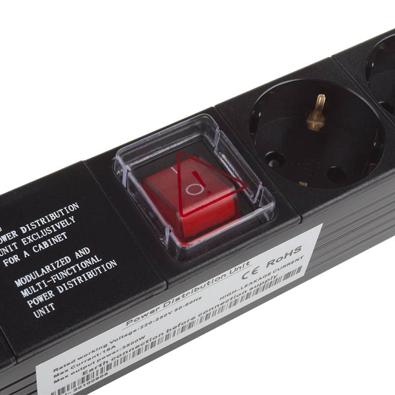 Блок розеток, 19", 1U, 16А, 8 розеток, корпус пластик, без шнура питания