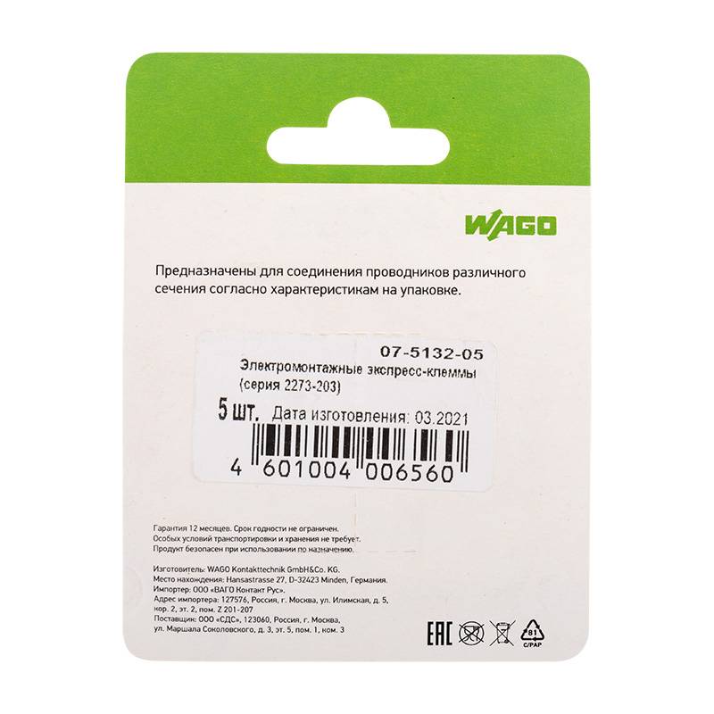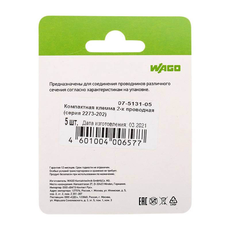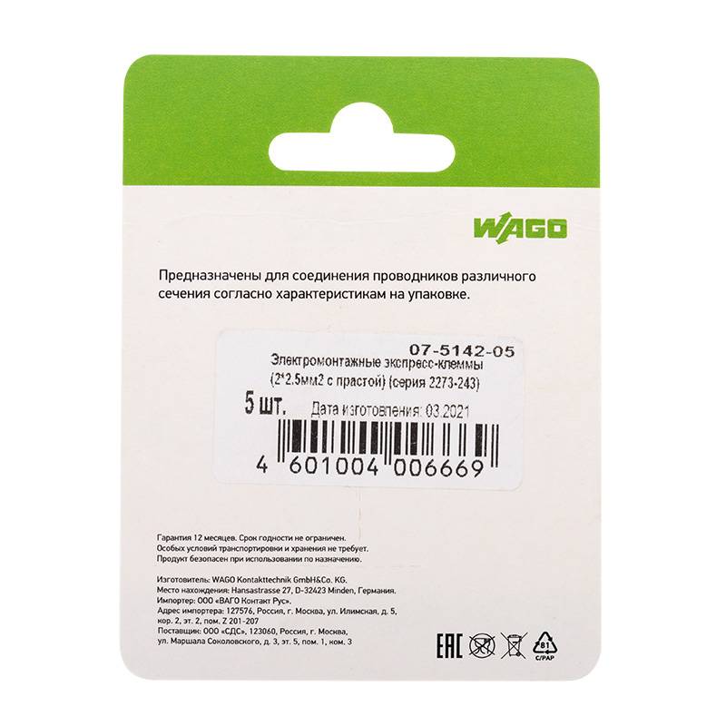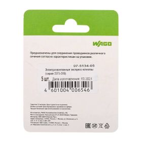 Электромонтажные экспресс-клеммы (2*2.5мм2) 5шт WAGO