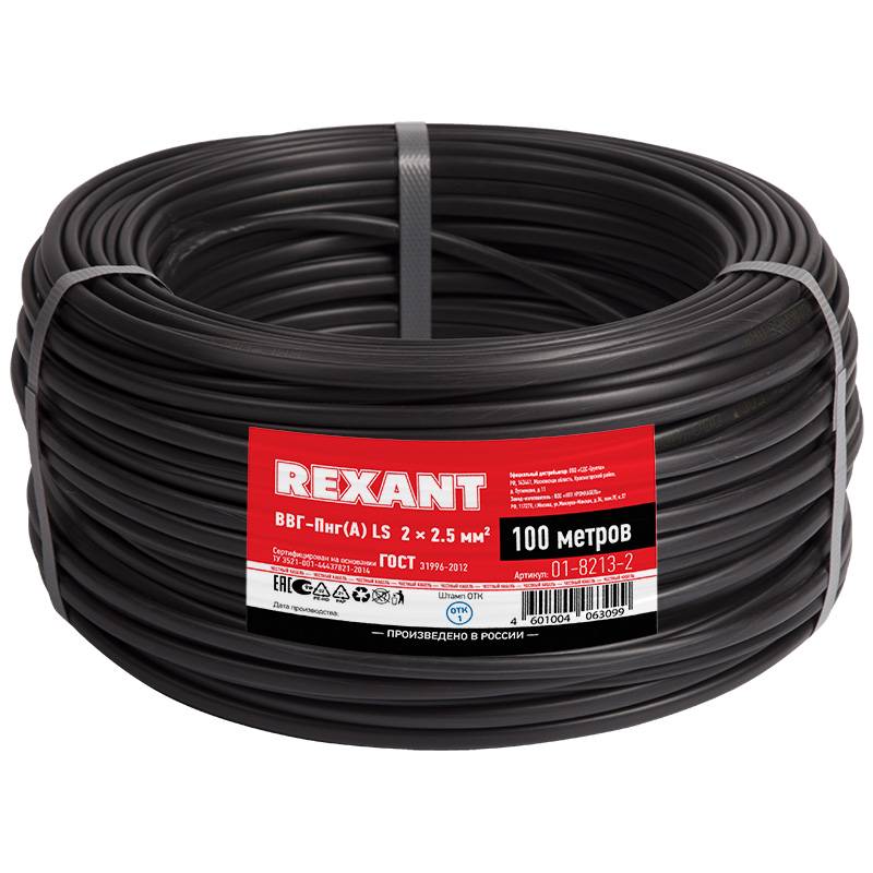 Кабель силовой медный ВВГ-Пнг(А)-LS 2х2.5 мм², 100 м ГОСТ (Электрокинетик)