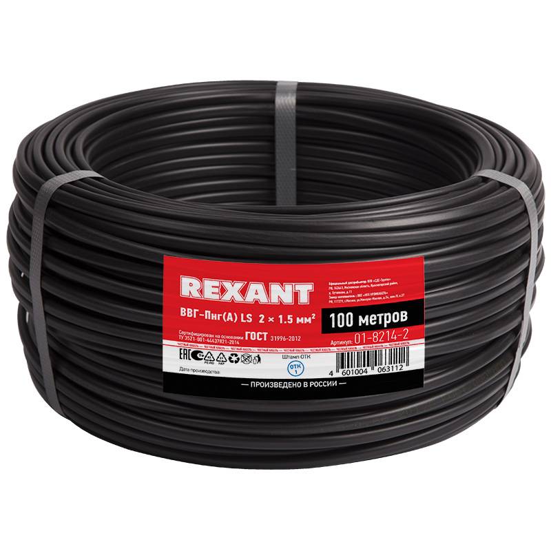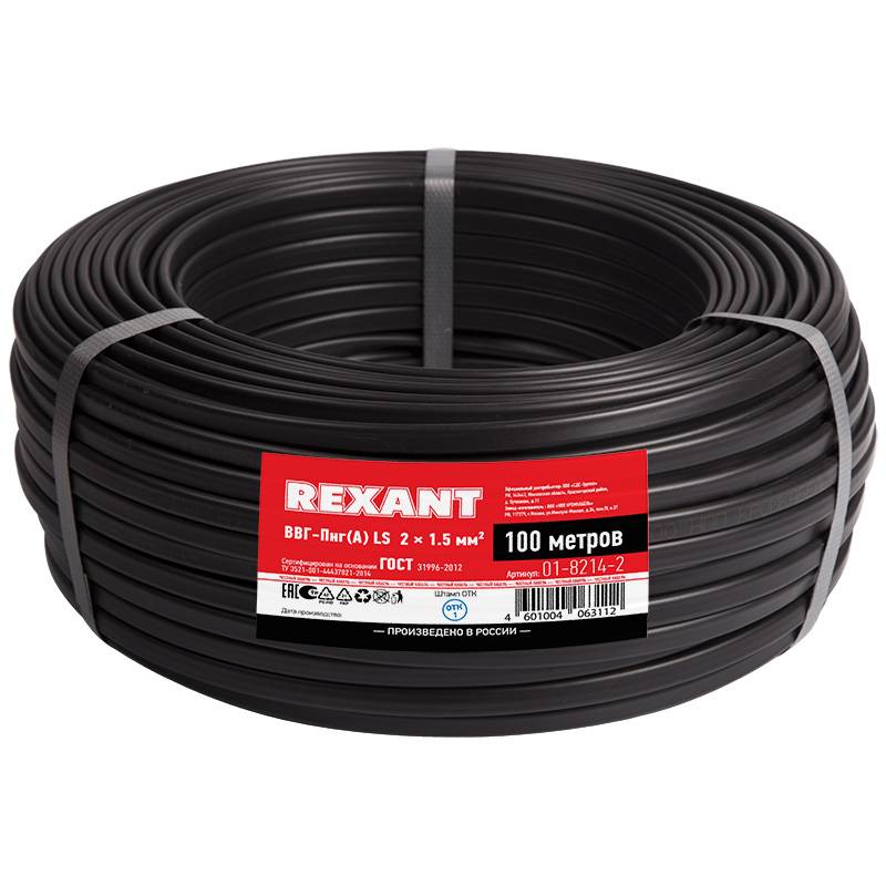 Кабель силовой медный ВВГ-Пнг(А)-LS 2х1.5 мм², 100 м ГОСТ (Электрокинетик)