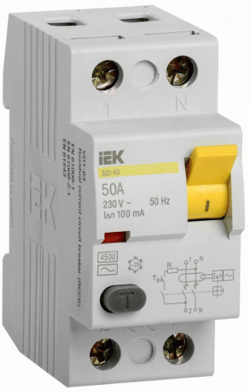 Выключатель дифференциального тока (УЗО) 2п 50А 100мА тип AC ВД1-63 IEK MDV10-2-050-100