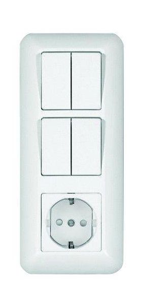 Блок СП БК-2 ВР-006Б Прима (2-кл.+2-кл. выкл+розетка с заземл.) (опт. упак) бел. SchE BK2VR-006B-B