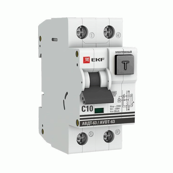 Выключатель автоматический дифференциального тока 2п C 10А 30мА тип AC 4.5кА АД-32 защита 270В электрон. PROxima EKF DA32-10-30-pro
