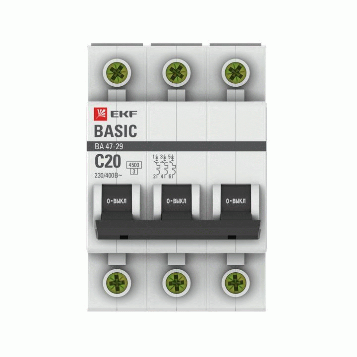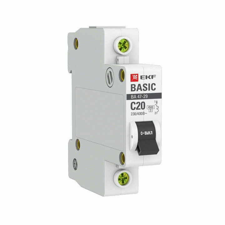 Выключатель автоматический модульный 1п C 20А 4.5кА ВА 47-63 PROxima EKF mcb4763-1-20C-pro