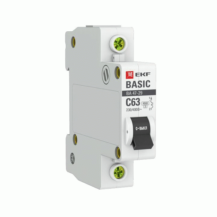 Выключатель автоматический модульный 1п C 63А 4.5кА ВА 47-63 PROxima EKF mcb4763-1-63C-pro