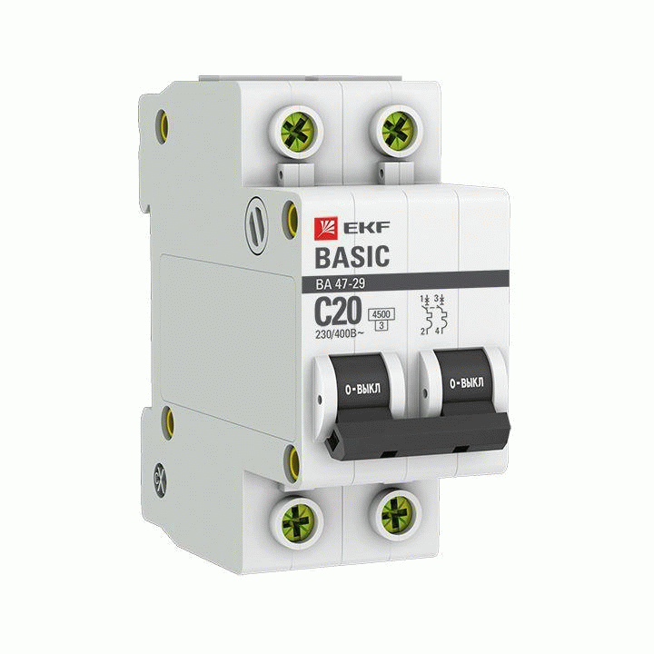 Выключатель автоматический модульный 2п C 20А 4.5кА ВА 47-63 PROxima EKF mcb4763-2-20C-pro