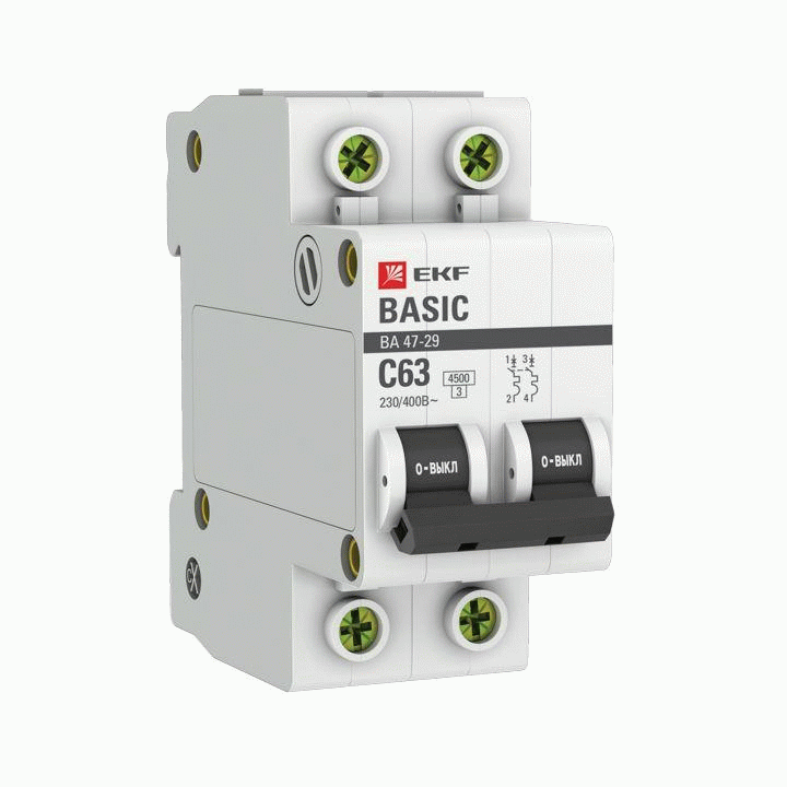 Выключатель автоматический модульный 2п C 63А 4.5кА ВА 47-63 PROxima EKF mcb4763-2-63C-pro