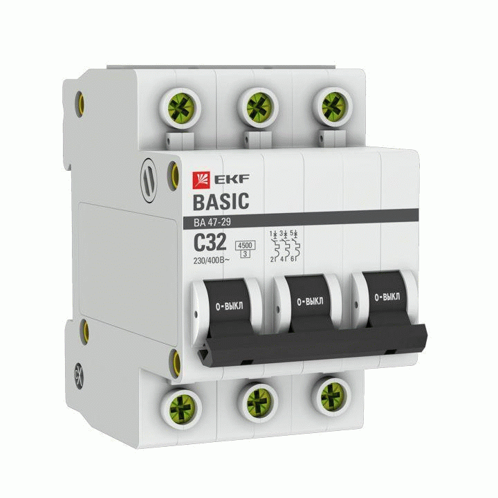 Выключатель автоматический модульный 4п C 32А 4.5кА ВА 47-63 PROxima EKF mcb4763-4-32C-pro