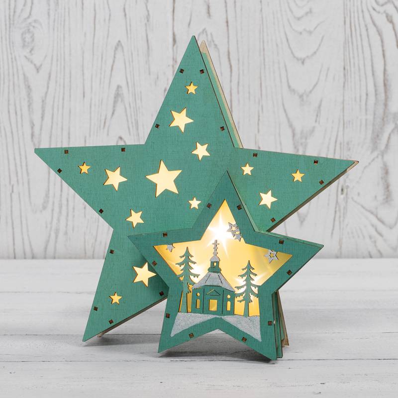 Деревянная фигура с подсветкой Звезда двойная 30х4х30 см