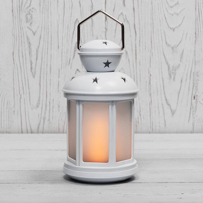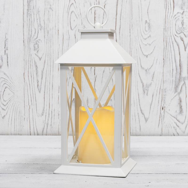 Декоративный фонарь со свечкой, белый корпус, размер 10,5х10,5х22,35 см, цвет ТЕПЛЫЙ БЕЛЫЙ