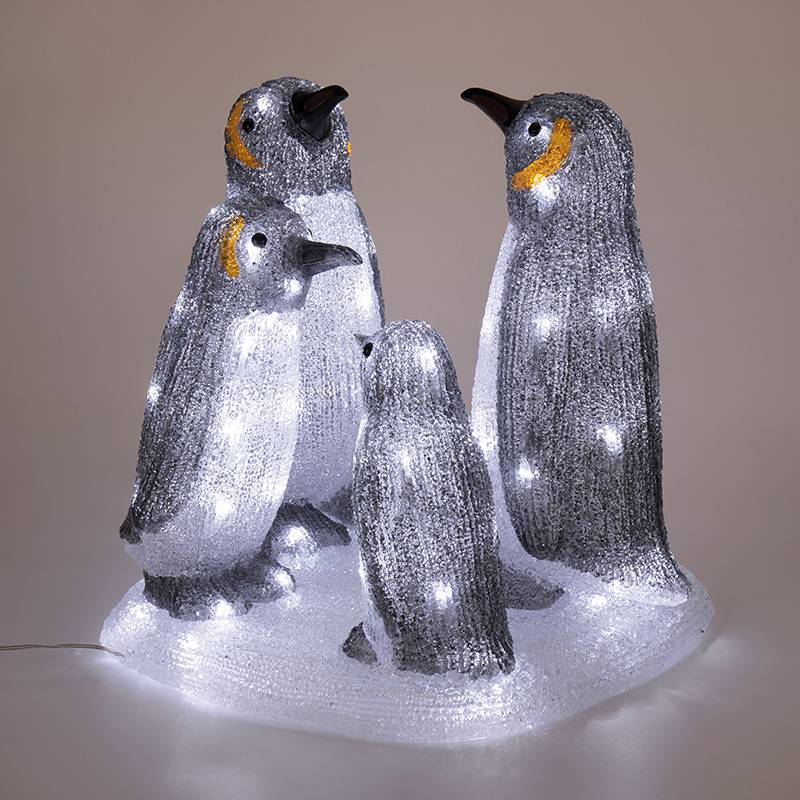 Акриловая светодиодная фигура Семья пингвинов 40х33х36 см, 80 светодиодов, IP65, понижающий трансформатор в комплекте NEON-NIGHT