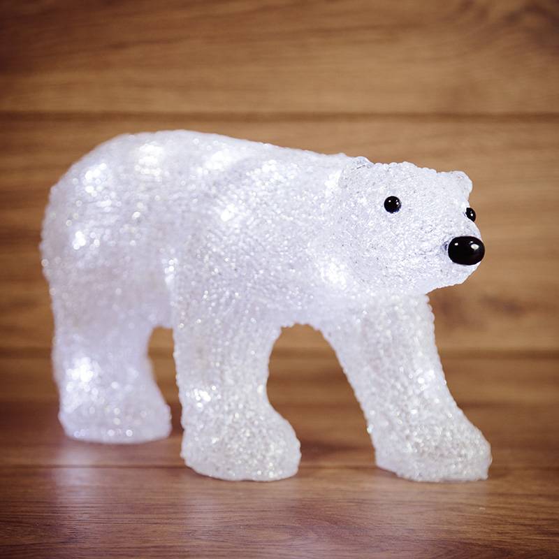 Акриловая светодиодная фигура Белый мишка 20 см, 4,5 В, 3 батарейки AA (не входят в комплект), 20 светодиодов NEON-NIGHT