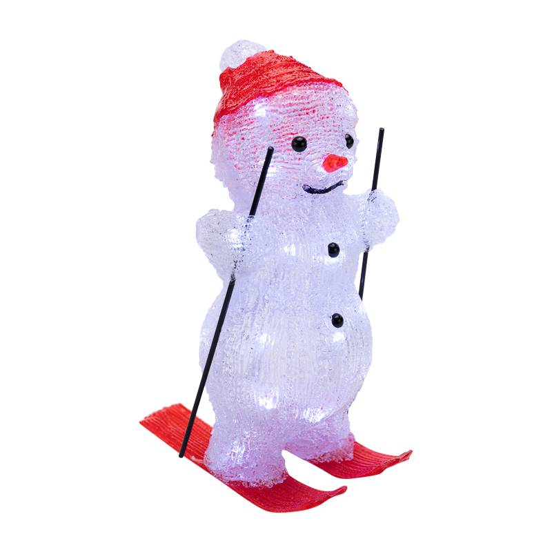Акриловая светодиодная фигура Снеговик на лыжах 16х20х29 см, 30 светодиодов, батарейки 3хАА (не входят в комплект) NEON-NIGHT