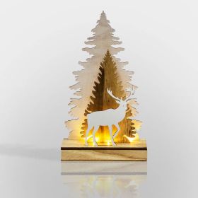 Деревянная фигурка с подсветкой Елочка с оленем 12x6x21,5 см