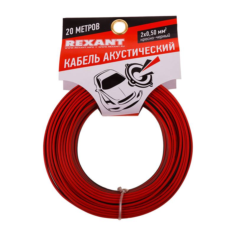 Кабель акустический 2х0,50 мм², красно-черный, 100 м, REXANT