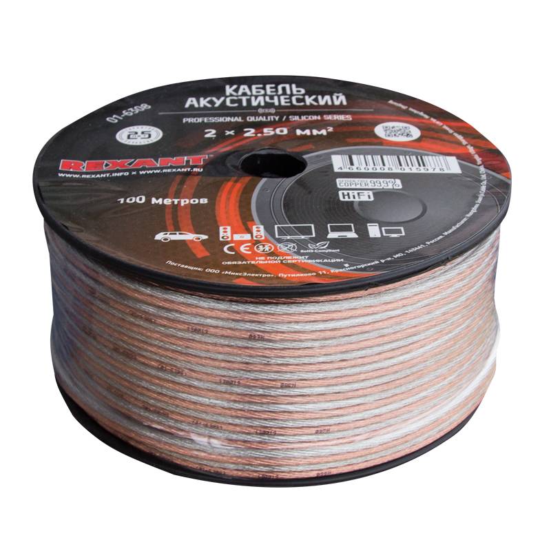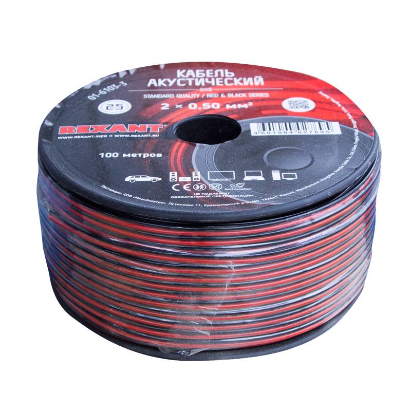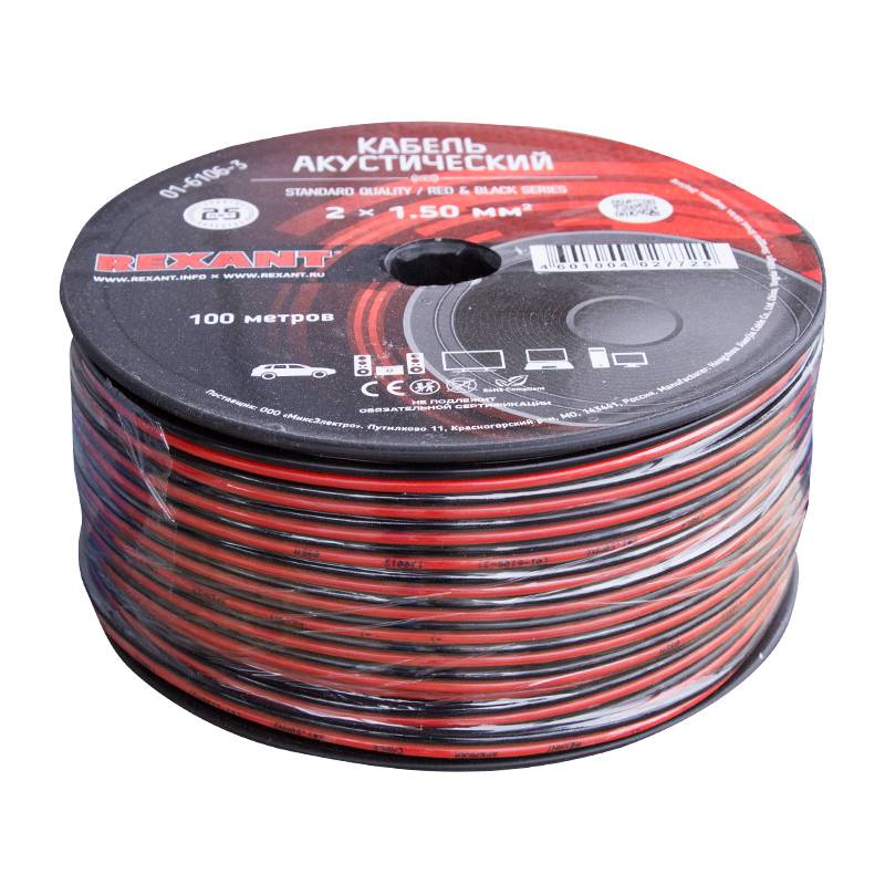 Кабель акустический 2х2,50 мм², красно-черный, 100 м, REXANT