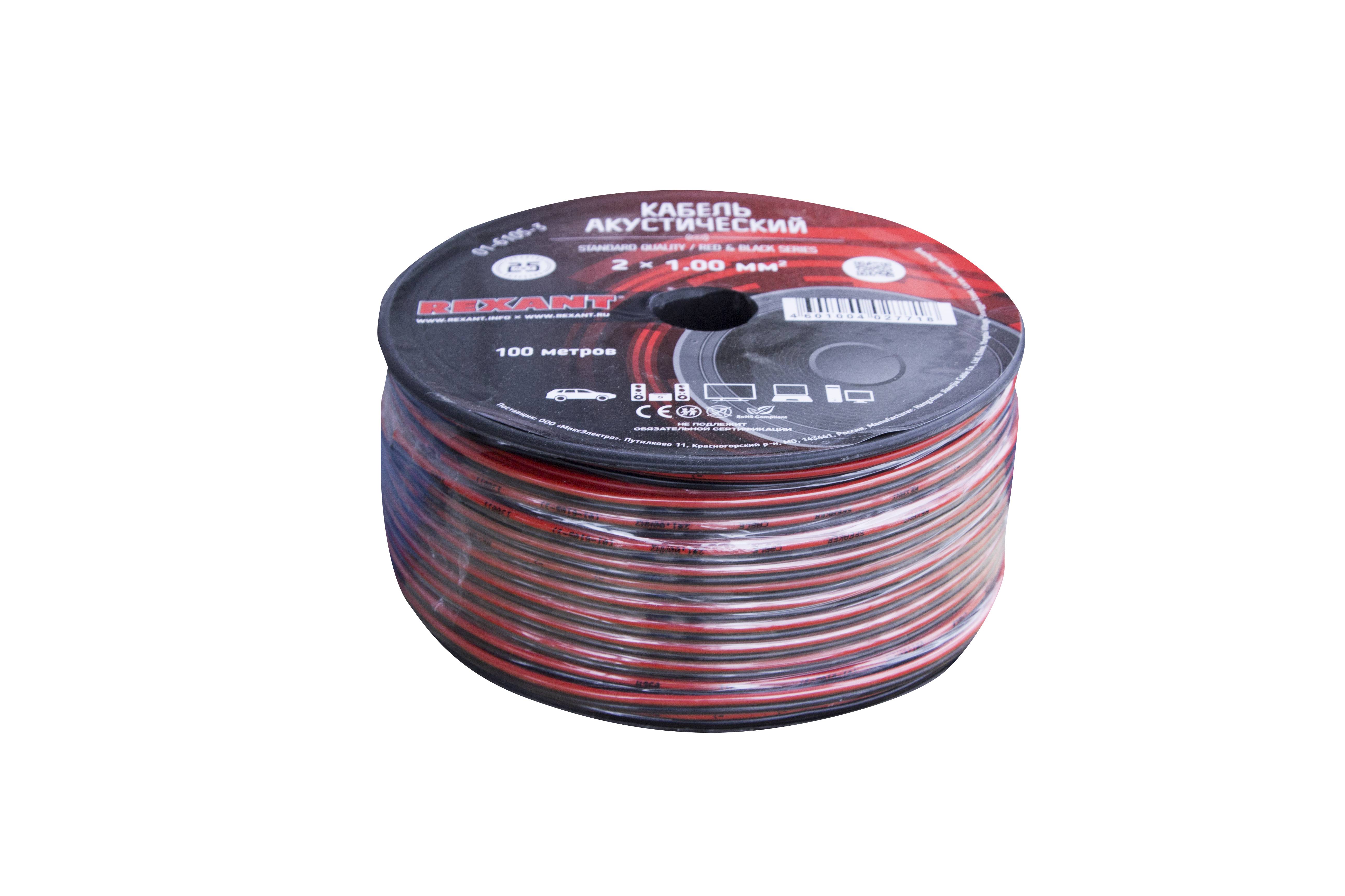 Кабель акустический 2х1,00 мм², красно-черный, 100 м, REXANT
