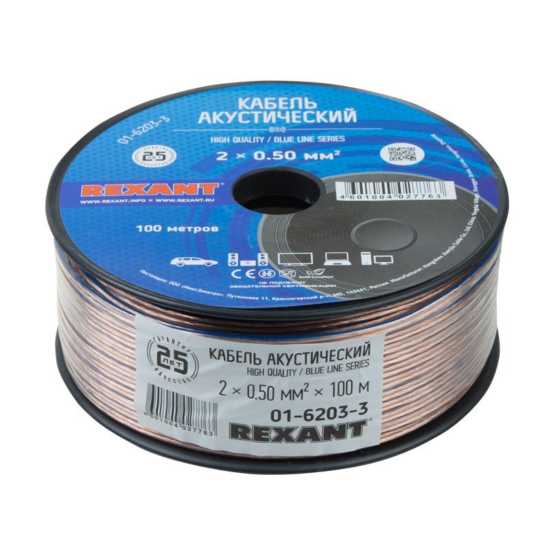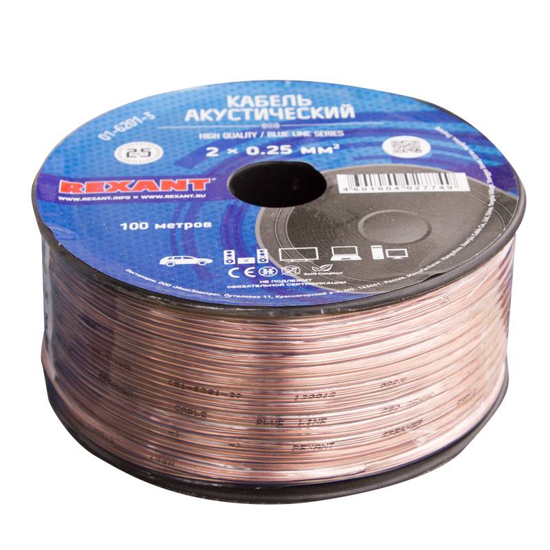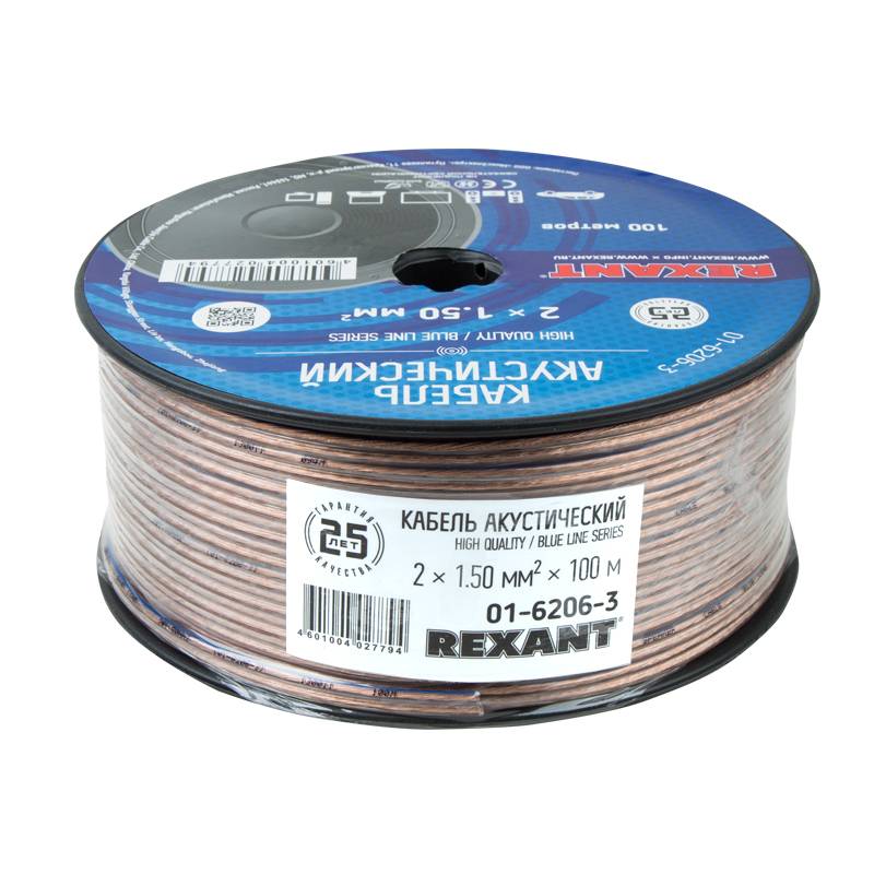 Кабель акустический 2х2,50 мм², прозрачный BLUELINE, 100 м, REXANT
