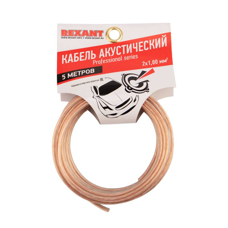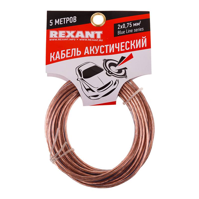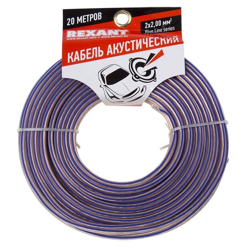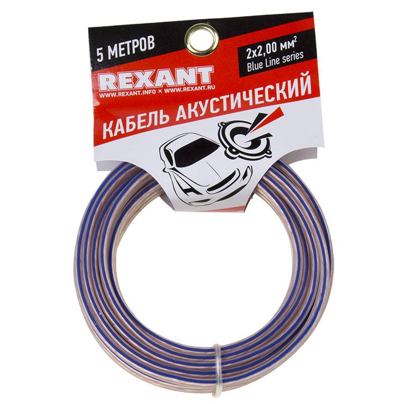 Кабель акустический 2х2,00 мм², прозрачный BLUELINE, мини-бухта 5 м, REXANT