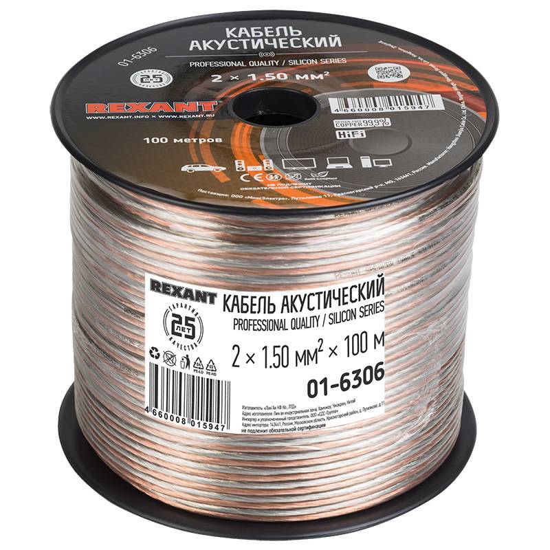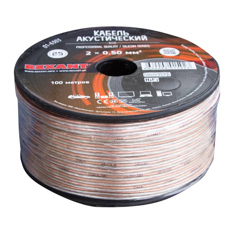 Кабель акустический 2х2,50 мм², прозрачный SILICON, 100 м, REXANT
