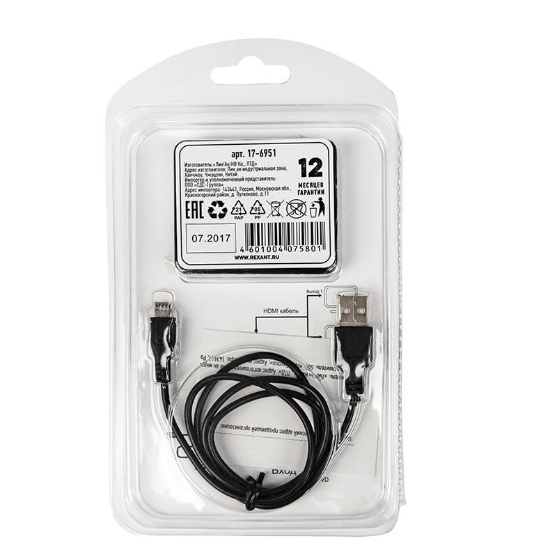 Делитель гнездо HDMI на 2 гнезда HDMI, пластик REXANT