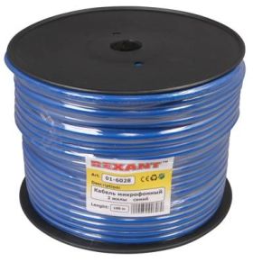 Кабель микрофонный 2х0,25 мм², ø 6,8 мм, синий, 100 м, REXANT