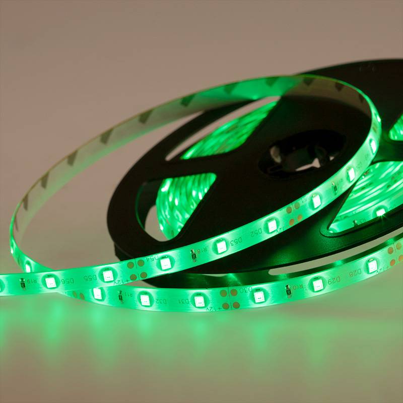 LED лента 5м открытая, 8 мм, IP23, SMD 2835, 60 LED/m, 12 V, цвет свечения зеленый LAMPER