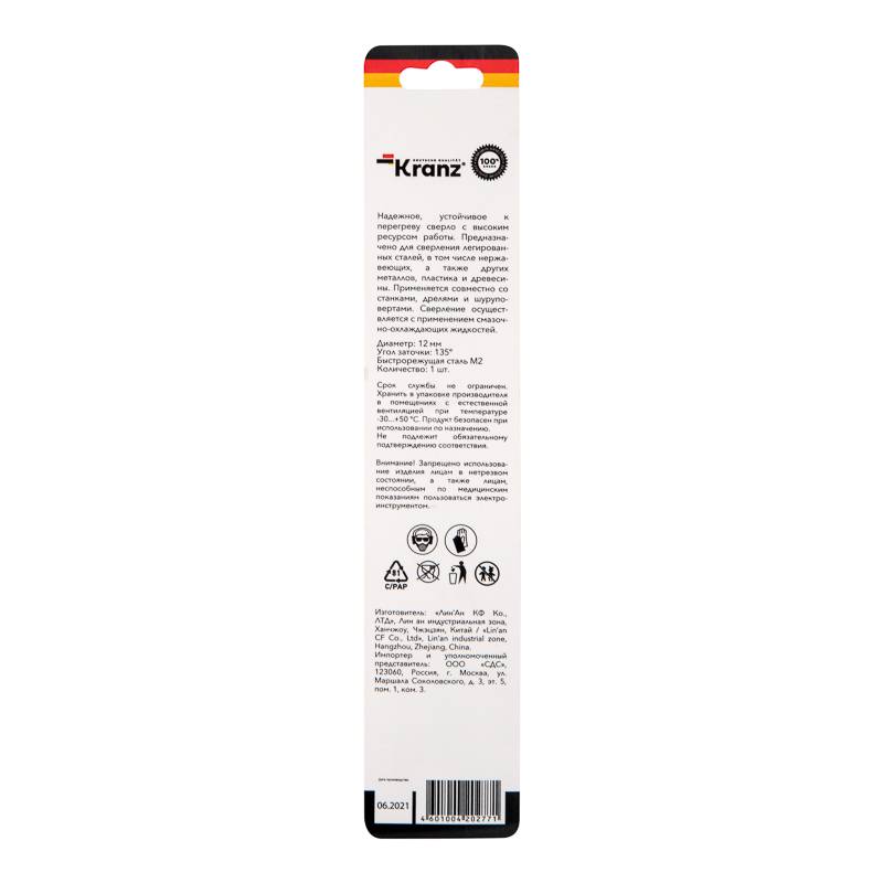 Сверло по металлу 12х151х101 мм «Стандарт+» (P6M5 M-2) (1 шт. в блистере) DIN 338 Kranz