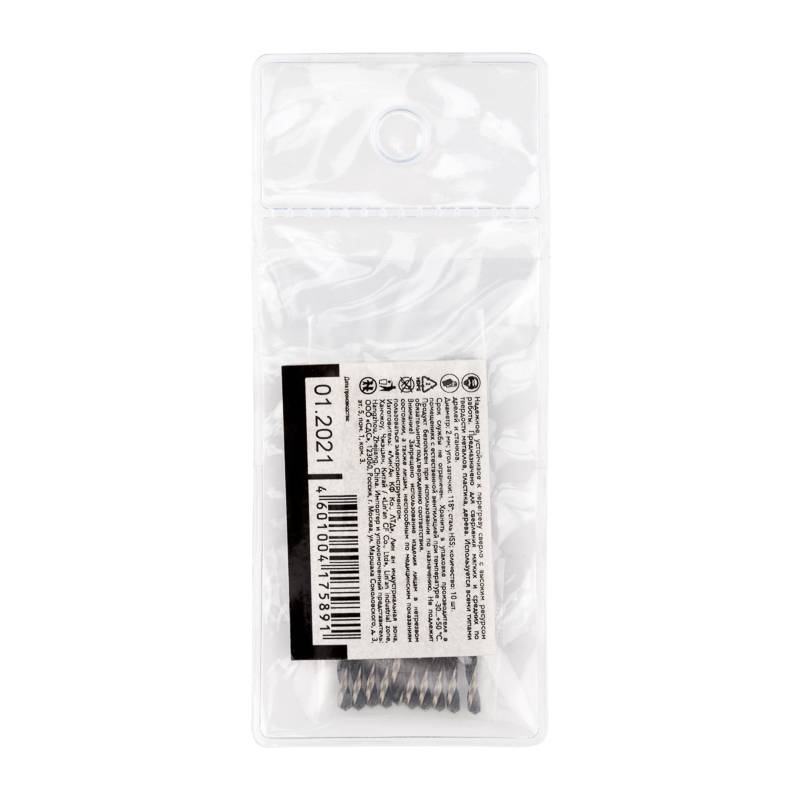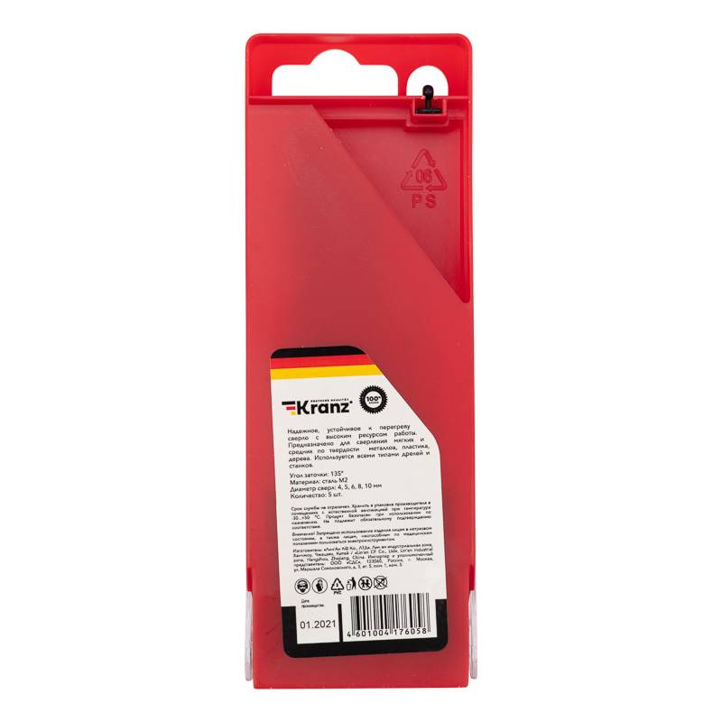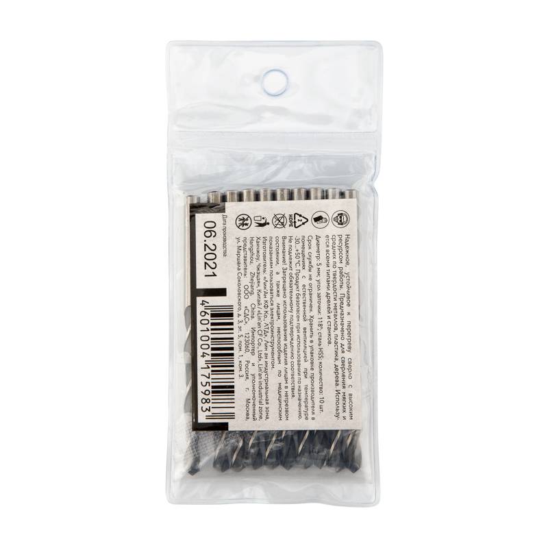 Сверло по металлу 5,0х86х52 мм HSS (10 шт. в упаковке) DIN 338 Kranz