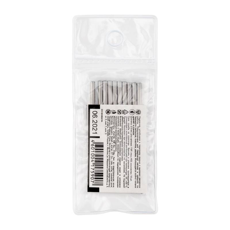 Сверло по металлу 2,5х57х30 мм HSS (10 шт. в упаковке) DIN 338 Kranz