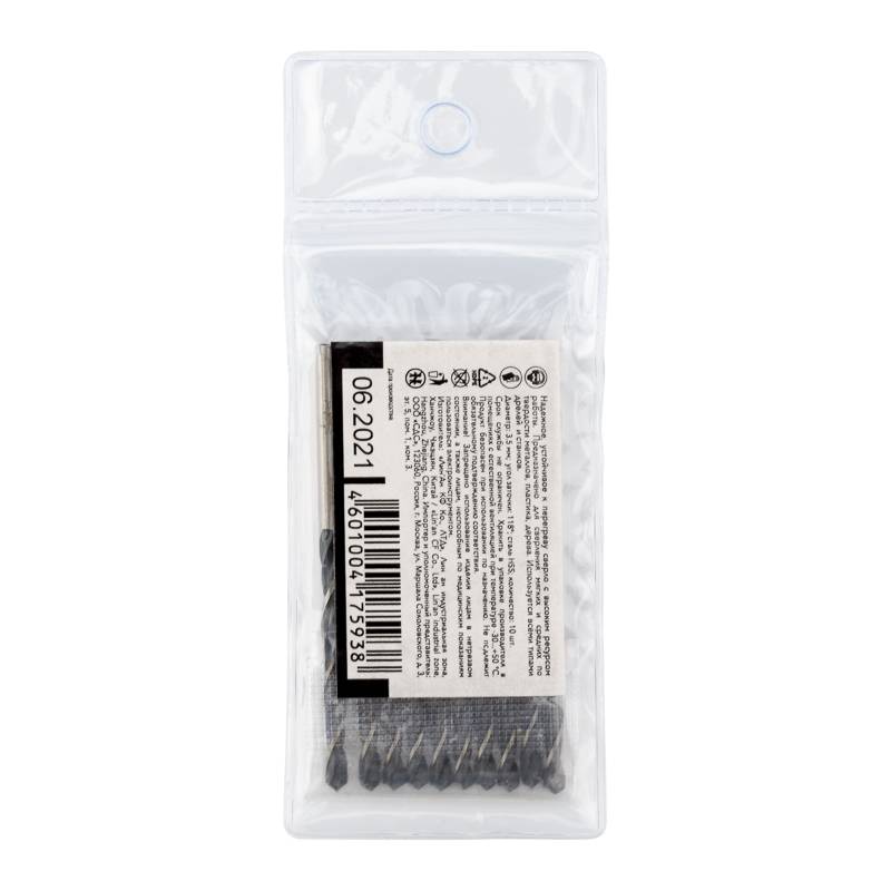 Сверло по металлу 3,5х70х39 мм HSS (10 шт. в упаковке) DIN 338 Kranz