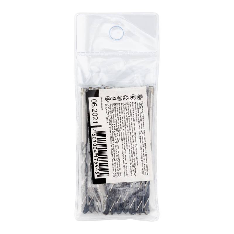 Сверло по металлу 4,0х75х43 мм HSS (10 шт. в упаковке) DIN 338 Kranz