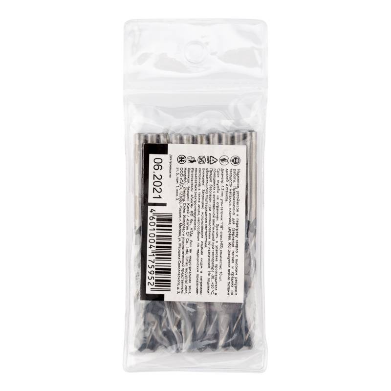Сверло по металлу 4,2х75х43 мм HSS (10 шт. в упаковке) DIN 338 Kranz