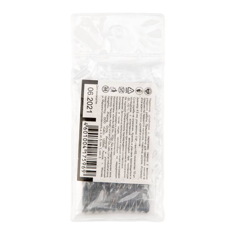 Сверло по металлу 4,5х80х47мм HSS (10 шт. в упаковке) DIN 338 Kranz