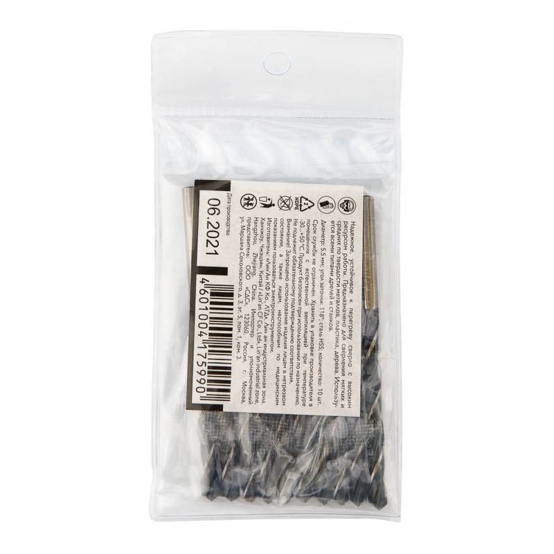 Сверло по металлу 5,5х93х57 мм HSS (10 шт. в упаковке) DIN 338 Kranz