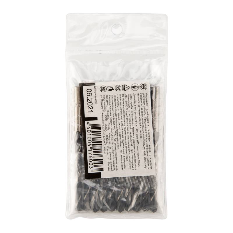 Сверло по металлу 6,0х93х57 мм HSS (10 шт. в упаковке) DIN 338 Kranz