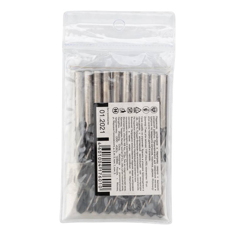 Сверло по металлу 7,0х109х69 мм HSS (10 шт. в упаковке) DIN 338 Kranz
