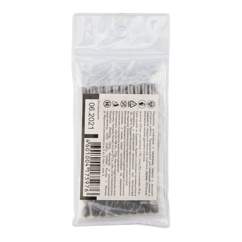 Сверло по металлу 4,8х86х52 мм HSS (10 шт. в упаковке) DIN 338 Kranz