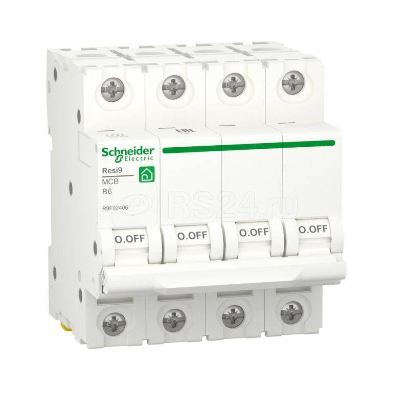 Выключатель автоматический модульный 4п B 63А Resi9 6000А SchE R9F02463