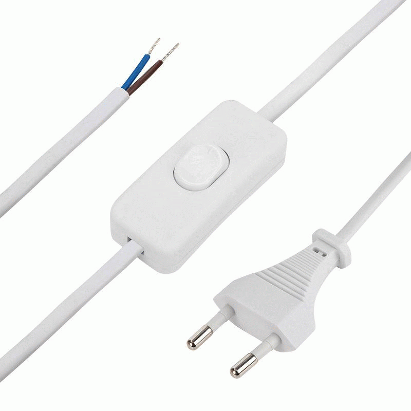 Шнур сетевой, вилка плоская с выключателем, без розетки, кабель 2x0.5 мм², длина 1,8 метра, 2.5 A, белый REXANT