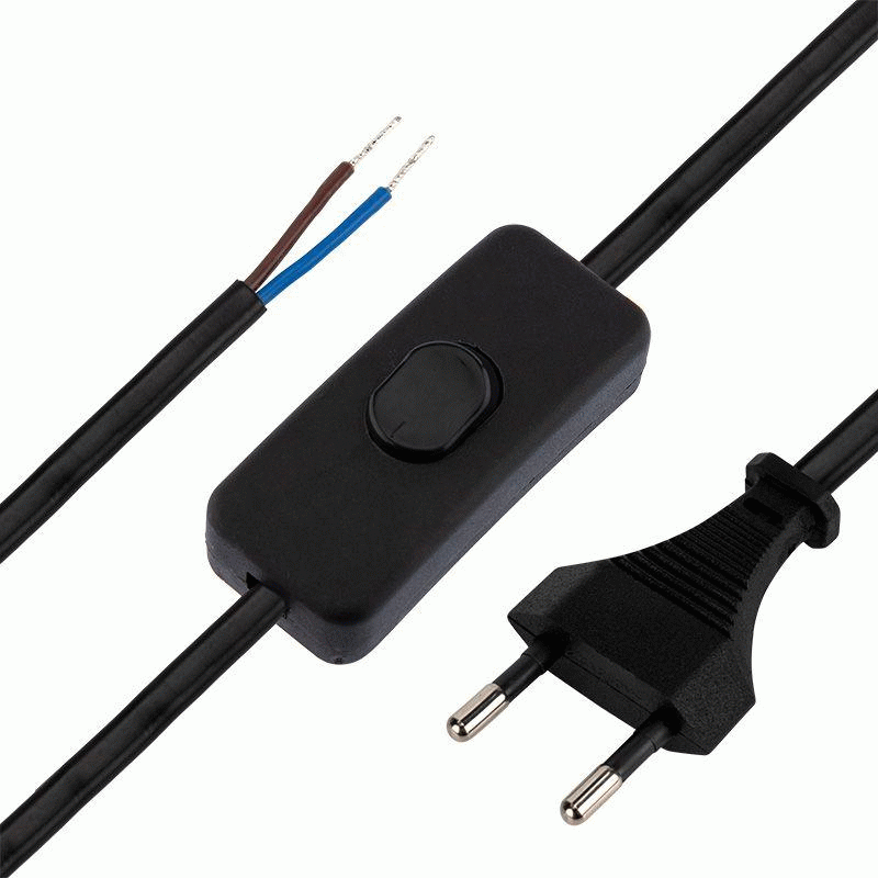Сетевой шнур с напольным переключателем 2х0,75 мм², 2,5 м черный REXANT