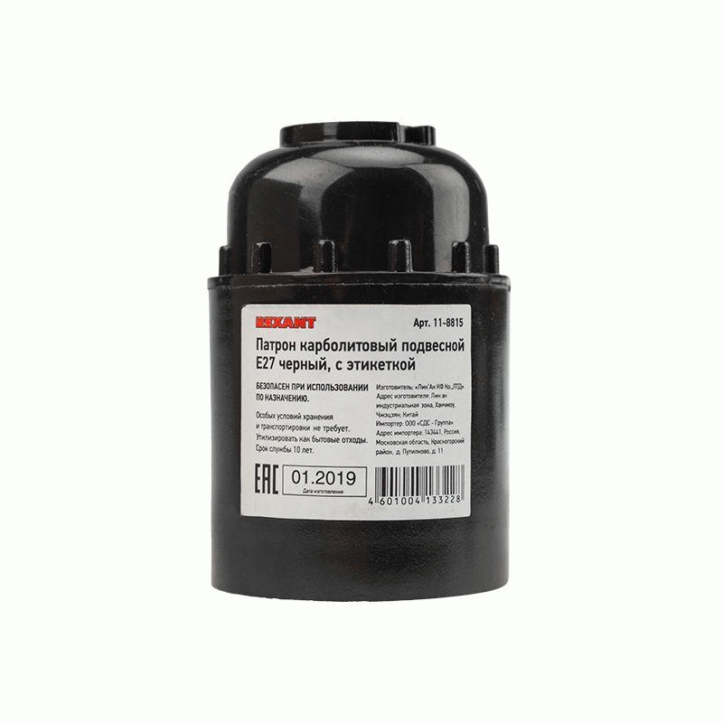 Патрон карболитовый подвесной Е27 черный c этикеткой REXANT
