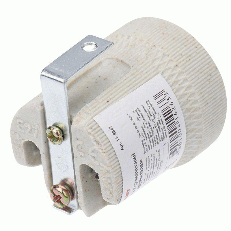 Патрон пластиковый настенный Е27 наклонный, белый c этикеткой REXANT