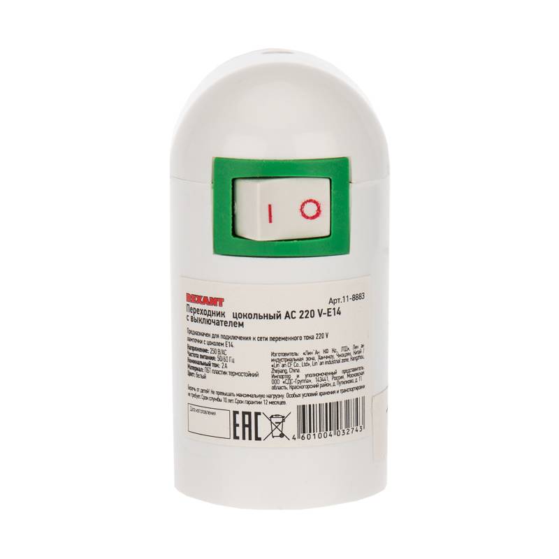 Переходник цокольный 250 В~E14 с выключателем REXANT