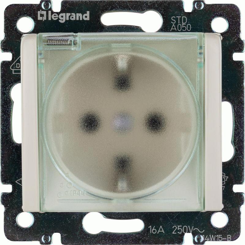 Розетка 1-м СП Valena 16А IP44 2P+E защ. шторки с крышкой немецк. стандарт механизм сл. кость Leg 774120