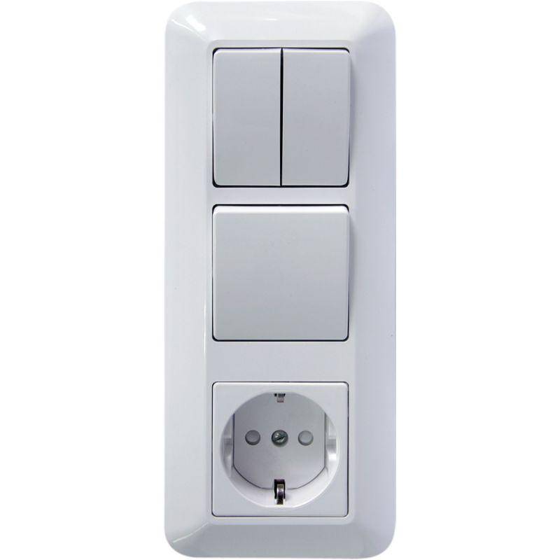 Блок СП Прима (2кл+1кл выкл+роз. с заземл.) (опт. упак) бел. SchE BK2VR-006A-B