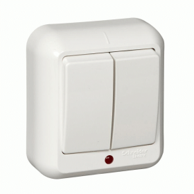 Выключатель 2-кл. ОП Прима 6А IP20 250В с подсветкой бел. (опт. упак.) SchE A56-007-B