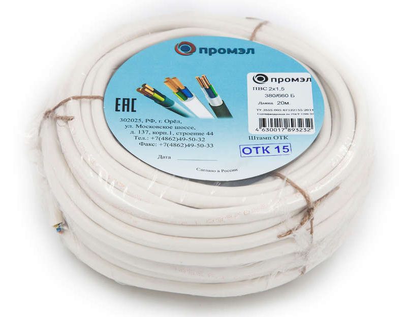 Провод ПВС 2х1.5 Б (бухта 5м) (шт) Промэл 13321480
