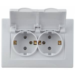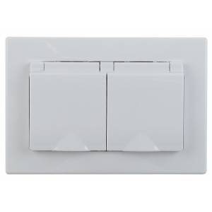 Розетка Intro Plano 1-210-01 2х2P+E Schuko с крышкой шторками, 16А-250В, СУ, IP44, Plano, белый